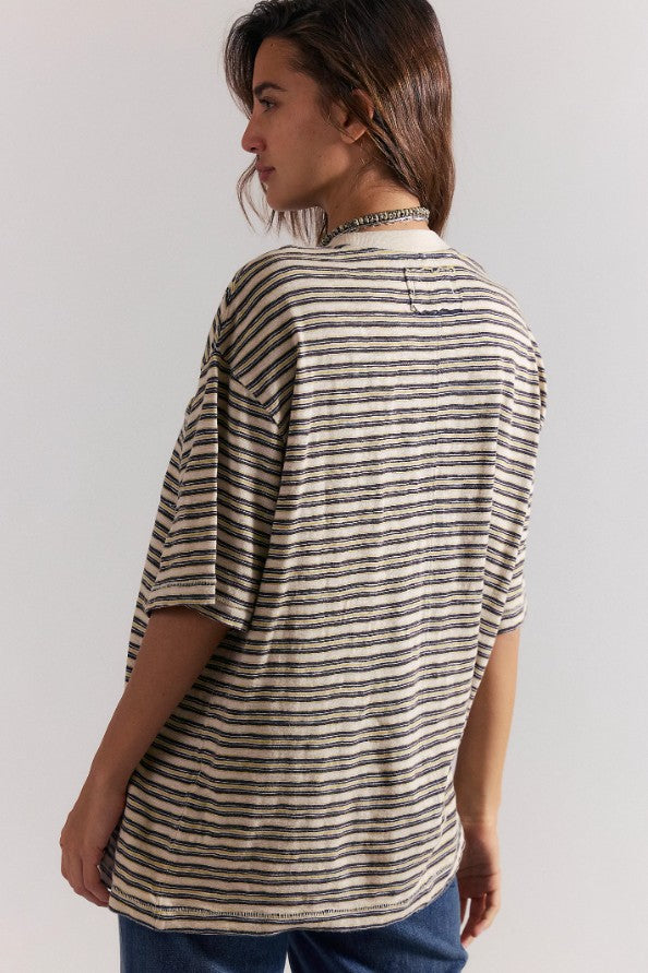 Free People All Love Stripe Pocket Tee in Tea Combo